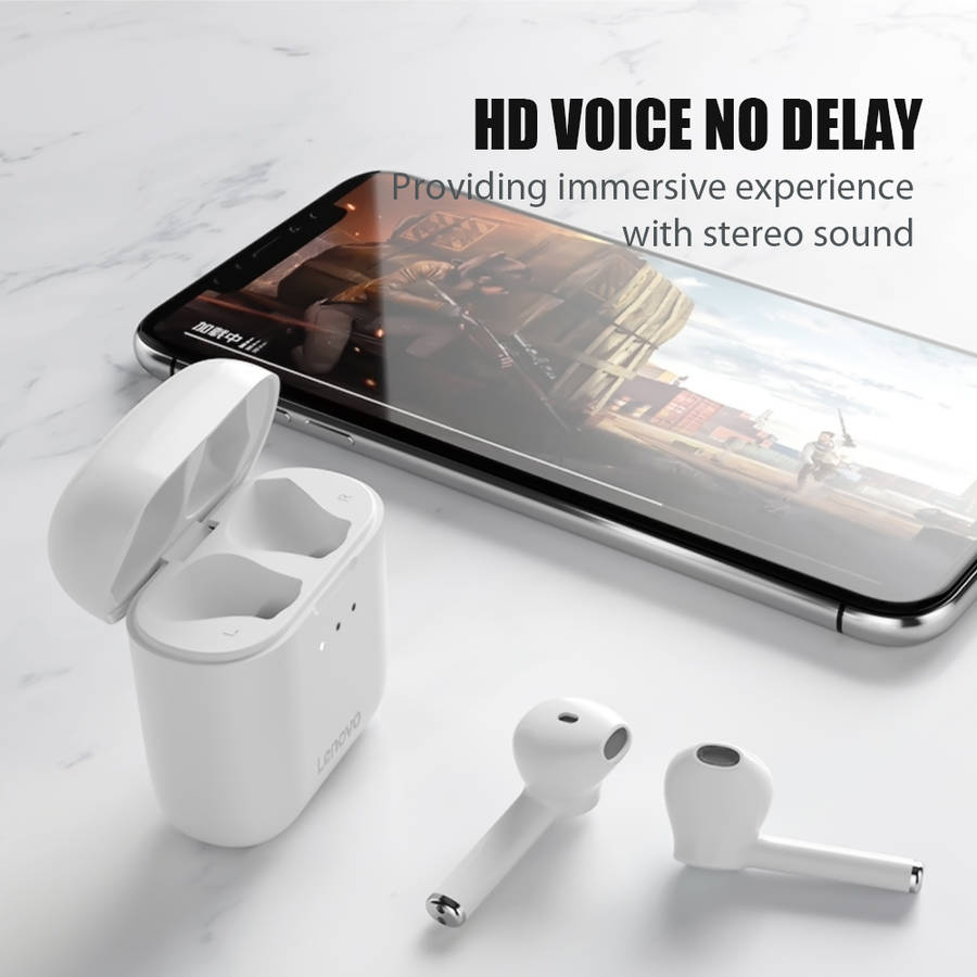 Lenovo TWS BT earbuds is compatible with iOS and Android,without the restriction of applied system. The stereo sound it provide make user feel in immersive situation, feeling better and enjoying more fun. The upgraded smart touch makes it easier to use without the tedious steps. User can also activate access through voice to free hands. The dual modes of the earpiece ensure the user to wear one side without the loss of sound.