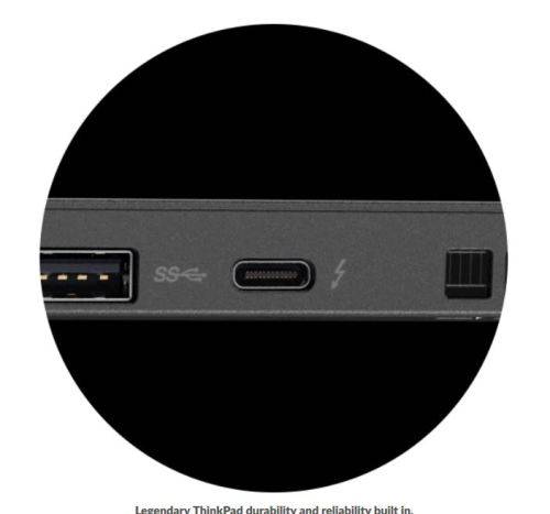 The T570 includes Intel® Thunderbolt™ 3—the technology that brings lightning-fast Thunderbolt to USB-C at speeds up to 40 Gbps. Connect a cable from your USB-C port to a Thunderbolt 3-enabled device, and get four times the data and twice the video bandwidth of any other port type, while also supplying power. So you get Thunderbolt, USB-C, and DisplayPort. Plus, you can even output to two 4K displays with the Thunderbolt Dock.