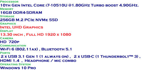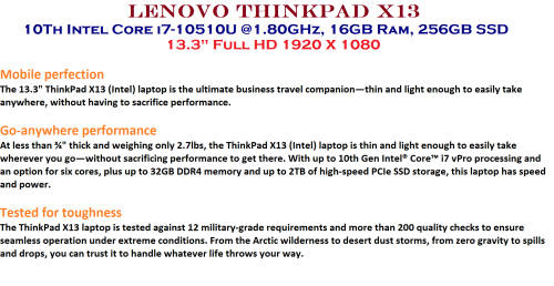 LENOVO THINKPAD X13 , Core i7-10610U , 16GB Ram, 256GB SSD, 13.3` FULL HD
