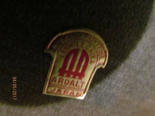 STAMPS/MARKS ETC : THE ITEM HAS A RED AND GOLD LABEL UNDERNEATH THE CUSHION -- "HAND PAINTED, LENWILE CHINA , ARDALT, JAPAN"