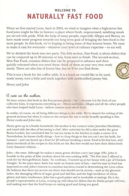 LEON Naturally Fast Food Book 2 By: Henry Dimpleby & John Vincent
