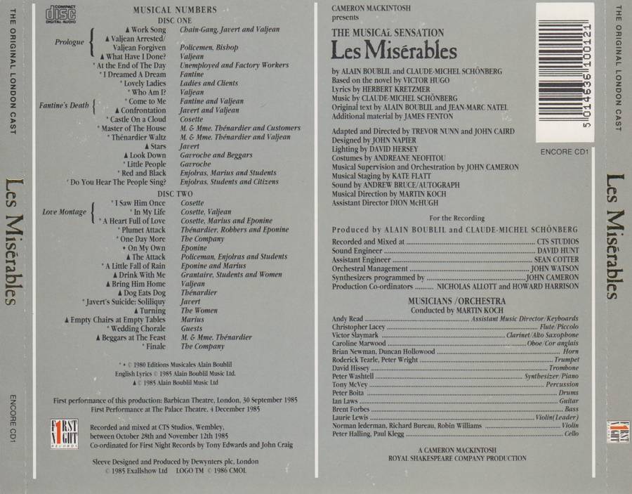 Les Miserables - The Musical Sensation : The Original London Cast (Double CD)