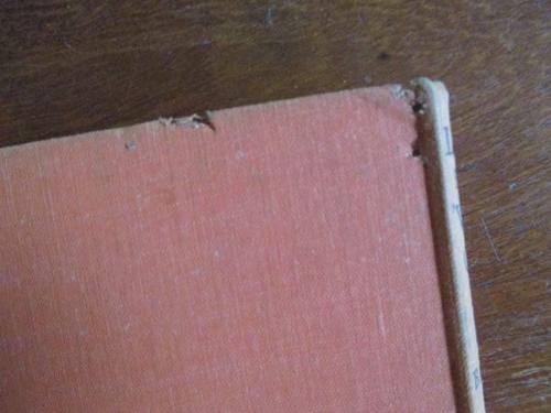 Hardcover, no jacket - Looks like there has been some old insect damage to the covers - please see pics. Previous owner name present.
