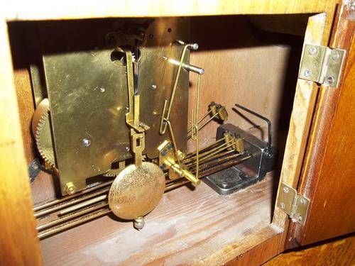 Beautiful stunning vintage mantel clock. Very good working condition. Movement serviced. Size 54 x 22 x 16. Requires bezel door and glass. Unique sound due to the fact that the clock has a rare, five hammer chime configuration. The two bim chime hammers are lifted simultaneously with one lever & the three bam chime hammers are lifted with another separate lever shortly after the first set of two. This sets this clock apart from the average readily available bim bam models which have only three chime hammers. Comes complete with pendulum bob, key and set-up guidelines. Postage R130.00 due to size and weight. Buyer can also courier or pick up at own cost. R60.00 packaging for the latter two options to be added to purchase price instead of the R130.00 postage option. R.S.A. only.