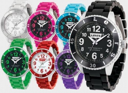 Acrylic bracelet with stainless steel buckle etching with Levi’s batwing logo.