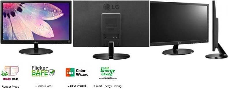The LG 20M38A 19.5 inch Widescreen LED Backlit LCD Monitor complete with a 1600 x 900 native resolution, a Mega 5,000,000:1 contrast Ratio , a 5 ms response time, 16.7 million colour support, and a 16:9 aspect ratio to provide a crisp, clear picture. Along with enhanced picture quality, you also benefit from reader mode which reduces blue light, making it easier on the eyes to read content displayed on the screen.