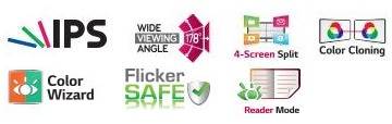 The monitor has a detachable base, and is VESA compliant wall-mountable. The 4-Screen Split feature allows you to run several programs and have multiple active windows on the screen at the same time. The Flicker-Free technology allows you to work for longer periods of time without straining your eyes. The Reader Mode is activated with a touch of a button. It allows the reduction of blue light emissions that can be harmful to the eyes, while the Color Wizard helps vision impaired viewers to adjust the RED and GREEN levels accordingly to easily distinguish colours to help ensure an optimal viewing experience