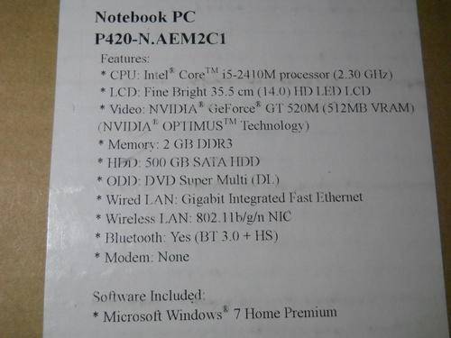 LG P420 Note Book PC Intel Core i5-2410M (2.30 GHz)