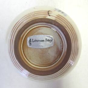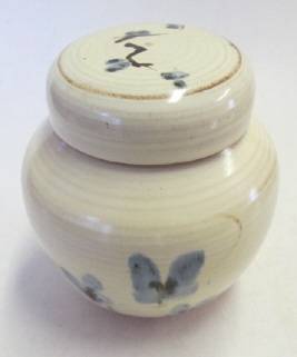 A handpainted Liebermann ginger jar, made by Liebermann Pottery in Johannesburg, probably in the 1980s. Condition good. Height (with lid): 135 mm.