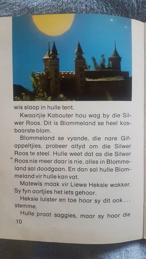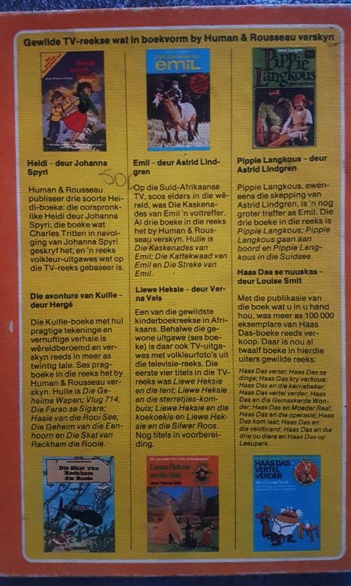 Voor in boek is boodskap in pen geskryf, normale verweer op rugkant.