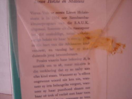 3de Druk 1972. Sellotape merke voor en agter. Inskrywing voor in boek. Boek en stofomslag oorgetrek met plastiek. Res van boek netjies en skoon.