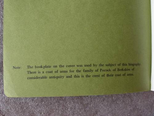 "The Life and Fortunes of John Pocock of Cape Town 1814-1876". Compiled from his journals and letters, by M G Ashworth. 1974, 1st Edition. Privately published, this book is in the original pale olive green thin card covers as issued. Very good condition, no foxing, covers only slightly discoloured from age. No tears or damage. Illustrated with old black and white photos. CONTAINS POCOCK FAMILY TREE, SOUTH AFRICAN BRANCH AND ENGLISH BRANCH. See pics below. Cover shows crest from Pocock Coat of Arms. Pocock family history/genealogy. A very collectable piece of Africana!