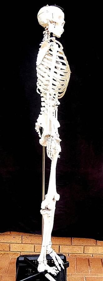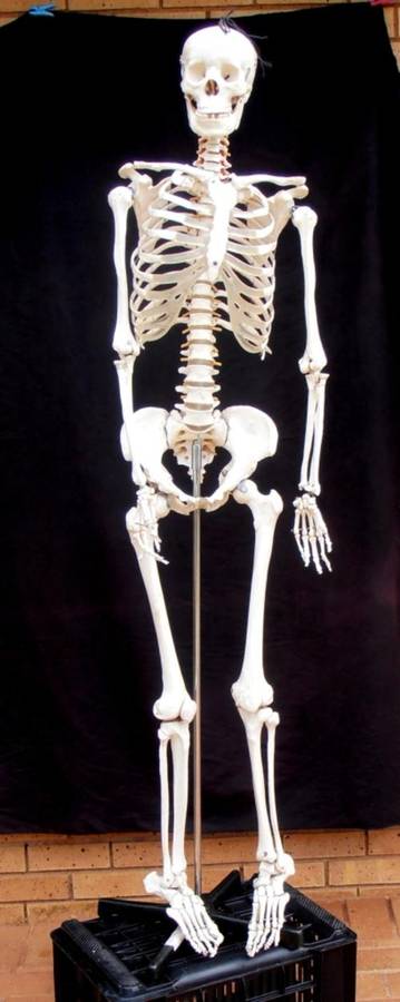 Educational life size adult human skeleton molded with sturdy resin material. All joints are movable, including the lower jaw. Good condition, complete, I cannot see any missing parts. Some of the original wires and screws have over the years been replaced. There is an old break to the left humerus which has been well repaired with epoxy glue. Mounted on a very solid steel stand. This piece can be disassembled for transport but I prefer not to ship this item.