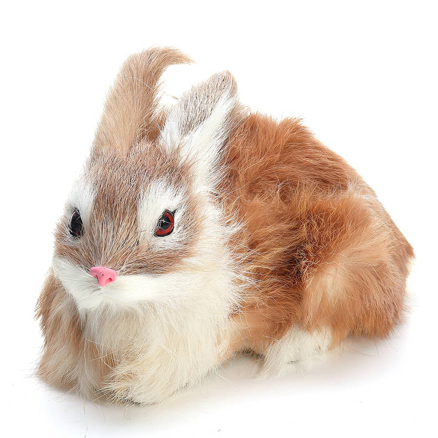 Lifelike Rabbit Crouching Animals Models Handmade Realistic Dolls Stuffed Plush Toy (COLOR.: KHAKI)