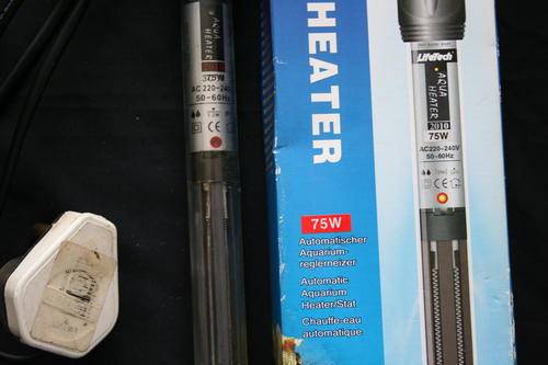AUTOMATIC FISH TANK HEATER --IN BOX-- USED, IN VERY GOOD CONDITION. 75 WATT . COMES WITH PLUG AND TWO SUCTIONS CUPS. DIGITAL TEMPERATURE INDICATOR.