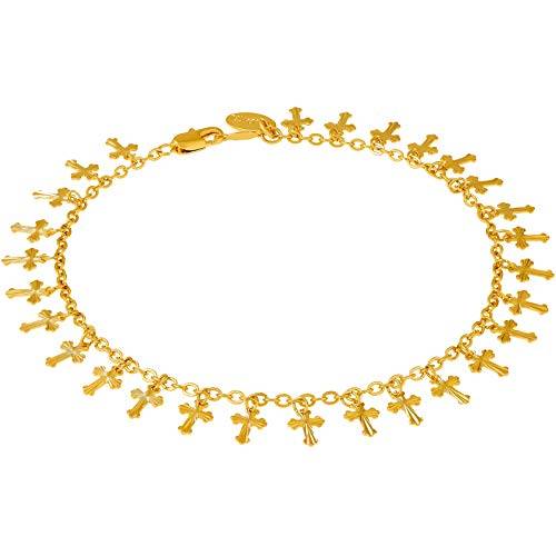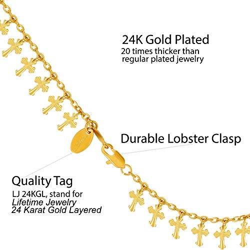 Lifetime Jewelry Gold Ankle Bracelets for Women Teens & Girls [ 24k Plated Dangling Cros..