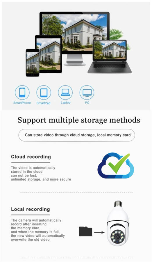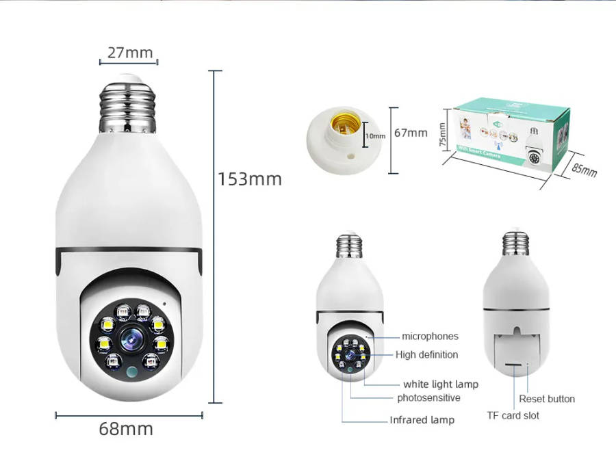 Light Bulb Type Wireless Security Camera 360° Panoramic 2-Way Talk WiFi Camera White