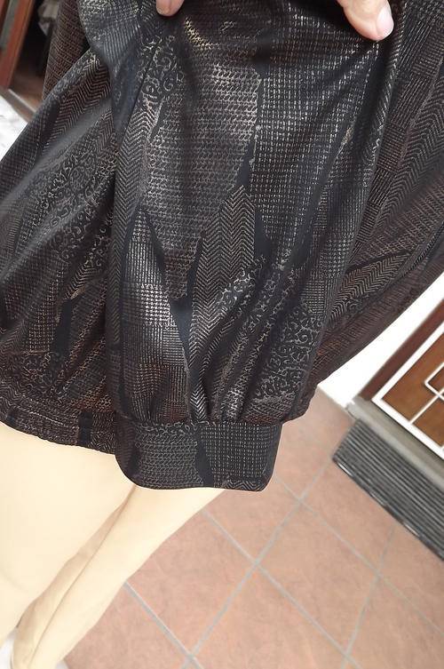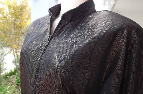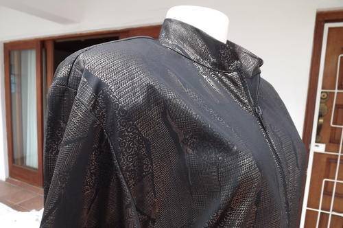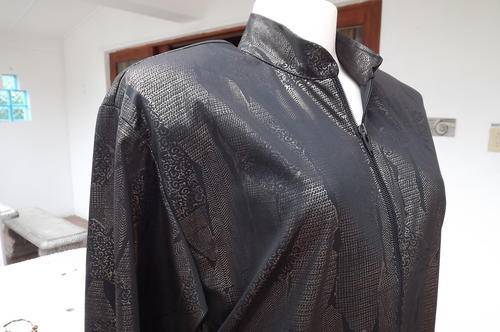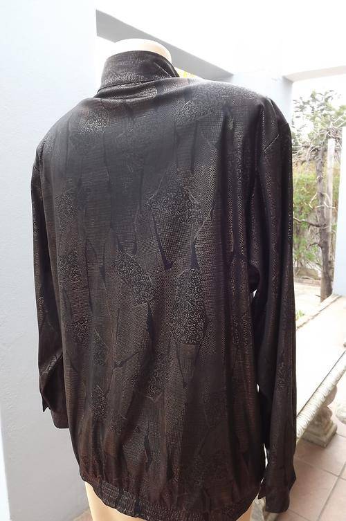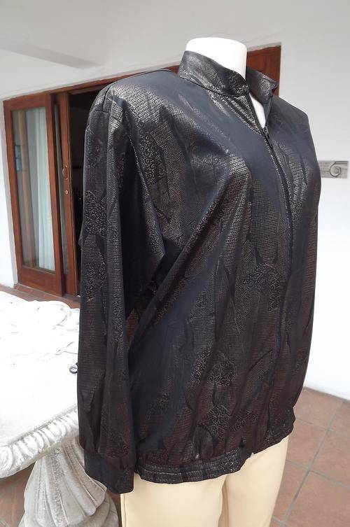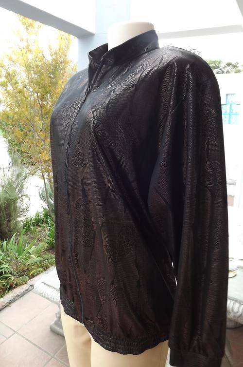 Light weight black zipped jacket with gold printed pattern.Size 42/18.Elasticated seam.Good conditi