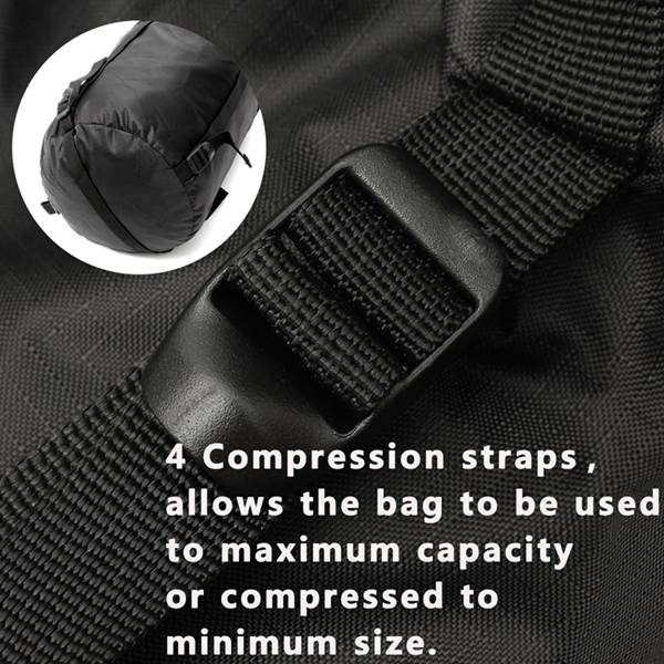 Features: Suitable for collect sleeping bag, clothes, foods and other sundries. High capacity, strong wear and tear resistance and portable. 4 Compression straps allows the bag to be used to maximum capacity or compressed to minimum size. Perfect for outdoor camping, hiking, picnic etc.