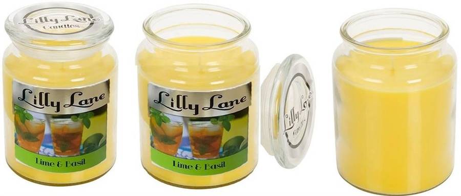 Lilly Lane Lime and Basil Infusion Scented Candle Large Lidded Mason Glass Jar – Wax Capacity 510grams, Burn Time Up to 75 Hours, High Quality Premium paraffin wax, Natural Material Wick , 100% recyclable, Large Lidded Mason Glass Jar Retail Box No warranty