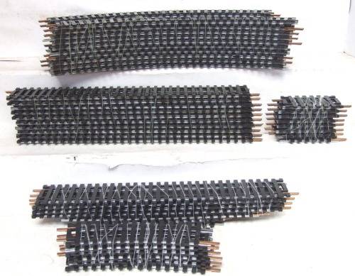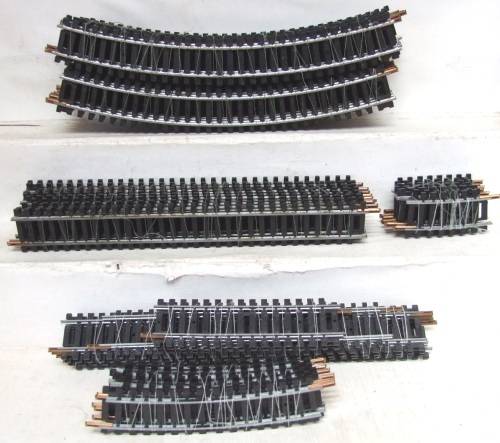 On auction are these Lima metal tracks with fishplates in good condition. No corrosion visible on tracks. Some fishplates need a bit of TLC. Some small pieces of underlay missing, overall in good usable condition. Please see photos for detail.