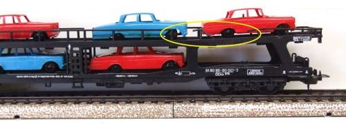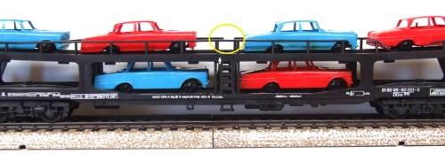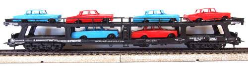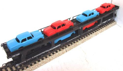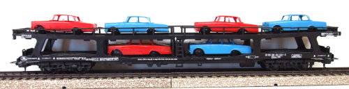 On auction is this auto transporter in fair condition. Overall length is 235 mm. It is fitted with old style Lima couplings and double bogeys with plastic wheel sets. All buffer stops intact. It has no corrosion on the metal parts. Unfortunately the load is glued to the carrier. Paintwork and decals are in fair condition. Some small pieces of rail missing, see yellow circles. Please see photos for detail for it is part of the description. Contact me by email for inquiries.