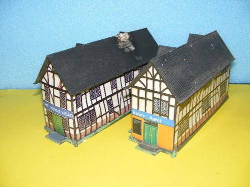 Poor condition. Cardboard walls. Roof damaged on one building.