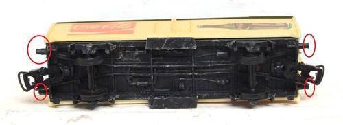 On auction is this refrigeration wagon in fair condition. Overall length is 126mm. It is fitted with old style Lima couplers and singe plastic wheel sets. It had slight corrosion on the metal parts that has been removed and treated. All four buffer stops broken. Paintwork is in good condition. Please see photos for detail for it is part of the description. Contact me by e-mail for enquiries.