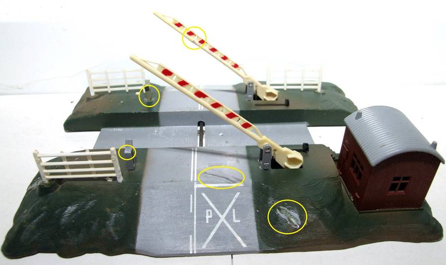 This model is up for auction and is in fair, repaired condition. I had some repairs done on it. The booms are weight activated and will close on the train's weight. Purchase it at a significantly reduced cost if you can use it; you will receive exactly what you see. Track not included. It is possible that some of the minor details are missing. These items will be carefully packed to reduce shipping damage. Please see the photos for further details, as they are part of the description. Please email me with any questions.