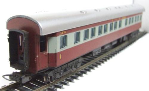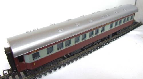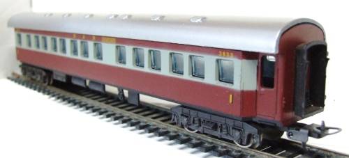 On auction is this 1 class Trans-Karoo  “JOHANNESBURG” passenger coach in very good used condition. Overall length is 280mm.  It is fitted with old style Lima couplers, double bogeys and metal wheel sets. It has no corrosion on the metal parts.  All bellows intact. The roof has been newly airbrushed. Please see photos for detail for it is part of the description. Contact me by e-mail for inquiries.