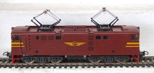 On auction is this SAR “Trans Karoo” brown dummy (not powered) loco in good condition. Slight corrosion on metal parts was removed and treated . Paintwork/decals are in good condition. There are one professional repair done to the body.(see yellow circle). It measures 165mm and is fitted with standard Lima couplers with metal wheel sets. New pantograph springs fitted and original cowcatchers. Please see photos for detail for it is part of the description. Contact me by e-mail for enquiries.