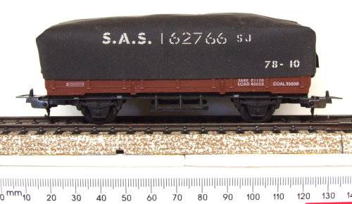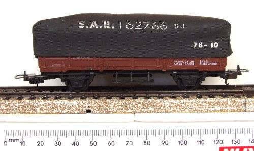 On auction is this freight wagon with tarpaulin in good condition. It is fitted with old style Lima couplings and single plastic wheel sets. Slight corrosion on the metal parts that was removed and treated. Both foot step missing. Paintwork and tarpaulin is in fair condition. Foam insert fitted to shape the tarpaulin. Please see photos for detail for it is part of the description. Contact me by e-mail for inquiries.