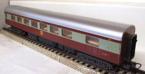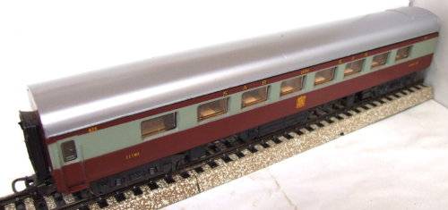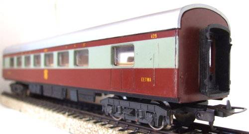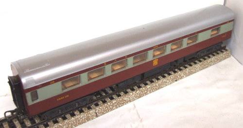 On auction is this Trans-Karoo SABIE restaurant coach in good used condition. Overall length is 280 mm. It is fitted with old style Lima couplings, double bogeys and metal wheel sets. It had corrosion on the metal parts that was removed and treated. All bellows intact. Original factory paint job on the body, but the roof was newly airbrushed. There are a few scratches on the body. Please see photos for detail for it is part of the description. Contact me by email for inquiries.