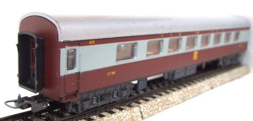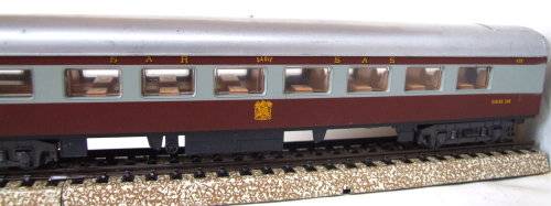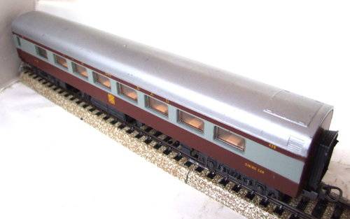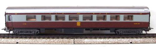 On auction is this Trans-Karoo SABIE restaurant coach in good used condition. Overall length is 280 mm. It is fitted with old style Lima couplings, double bogeys and plastic wheel sets. It had corrosion on the metal parts that was removed and treated. All door bellows intact. Original factory paint job on the roof , it has some small marks on the roof. If you want me to newly airbrush the roof it will be R25 extra on the final auction price? There are also some small marks on the body that I will not be able to repair. Please see photos for detail for it is part of the description. Contact me by email for inquiries.