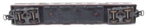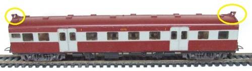 On auction is this SAR suburban passenger car in a good condition. Paintwork /decals are in good condition except for a few small visible paint touch-up's. It measures 224mm and is fitted with old style Lima couplers and double bogeys with metal wheel sets. Both the cable guards was missing and has professionally been  replaced with brass ones (see yellow circles). Slight corrosion on the metal parts that was removed and treated. Nothing else seems to be missing or broken. Please see photos for detail for it is part of the description. Contact me by e-mail for enquiries.