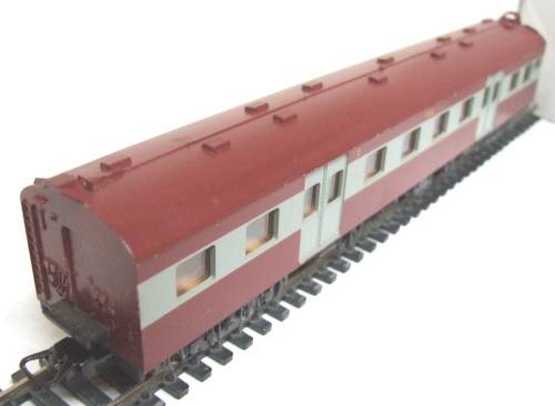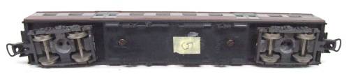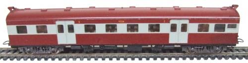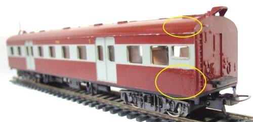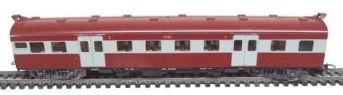On auction is this SAR suburban passenger car in a good condition. Paintwork /decals are in good condition. It measures 224mm and is fitted with old style Lima couplers and double bogeys with metal wheel sets. Both the cable guards is original. Slight corrosion on the metal parts that was removed and treated. One of the bogeys has been fitted with a small screw because one of the two tows that keeps the bogey in place was broken off. These specific bogey material become brittle with age and many times it happens that it fails(see yellow circles). This modification can be removed and the original bogey may be fitted if you wish to do that. no damage to the under-carraige. Some paint touch-up on this unit. Please see photos for detail for it is part of the description. Contact me by e-mail for enquiries.