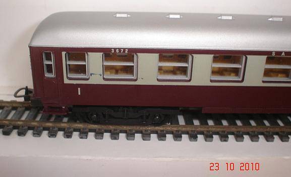This SAR 1st class passenger carriage is in a fair condition. There are two window supports and one step missing on this carriage. Small scratch on one side of carriage (See photo). Length is 27 cm. Bogies fitted with plastic wheel sets, couplers fine. Please see photos for detail or contact me by e-mail for enquiries.