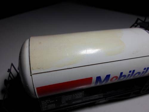 The following Mobile oil tanker is in very good condition and boxed. There is however a brown stain on the top of the unit as shown below