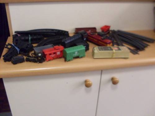 LIMA PART SAR TRAIN SET WITH TRACKS LOCO AND COACHES ...SOLD UNTESTED/ AS IS.... LIMA BATTERY POWERED SPEED CONTROLLER HO/00 SCALE .... LIMA SAR OPEN COAL TRUCK AND TIP TRUCK STEAM LOCO SAR NO 41312 AND UNIT E919 AND 12 TRACKS ++++++ AND A BONUS PLASTIC PART TRAIN SET 4 PLASIC COACHES 25 PLASTIC TRACKS AND A LOCO..... POSTAGE IS R155 WITH POSTNET TO POSTNET