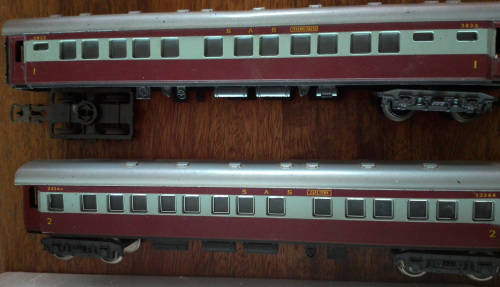 THIS IS A COLLECTION OF 7 PASSENGER COACHES, S A R, MADE BY LIMA. THE UNITS ARE UNTESTED AND TWO ARE UN BOXED. VISUAL EXAMINATION REVEALS THEM TO BE IN ORDER, CAN BE USED. ONE COACH HAS MINOR REPAIRS TO BE DONE AS THE SET OF WHEELS NEED TO BE REPLACED.