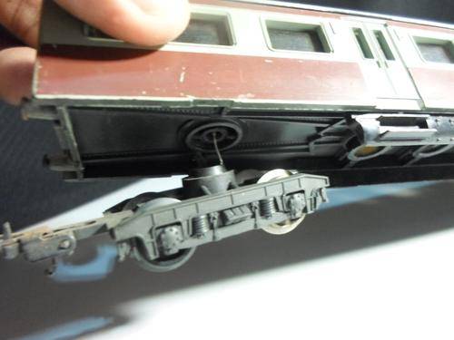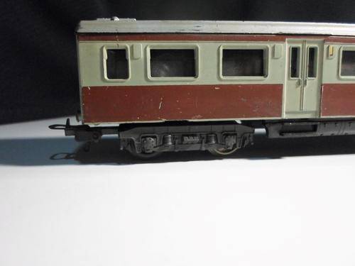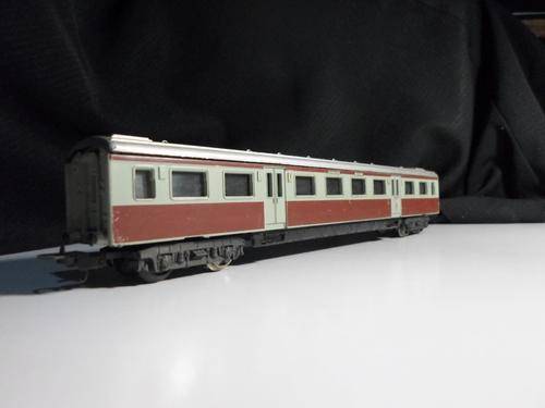 The following SAR coach has no damages to the body of the unit. one of the two clips that holds the boogie to the chassis is missing hence it doesn't clip on securely . once the train is on the ground it runs perfectly . This is a lima unit. The one coupler has slight rust and there are some dirt marks on the roof. There is no damages to the unit