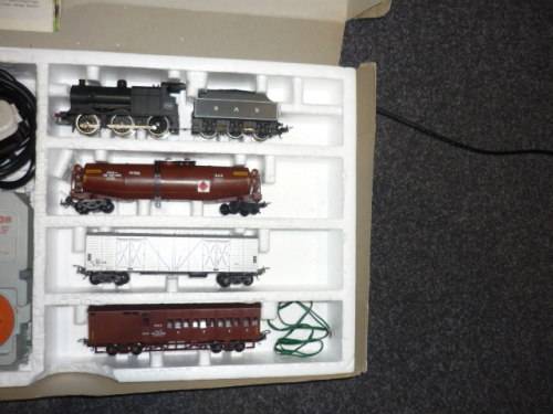 The coaches as well as the engine appear unplayed with.The box is not in great condition.