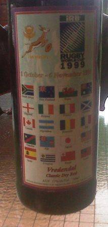 Collectable Bottle of Wine:  Rugby World Cup 1 October 1999 - 6 November 1999:  Vredendal Classic Dry Red