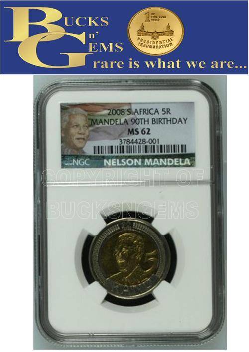 BE ONE TO OWN A LEGEND OF SOUTH AFRICA A SPECIAL COIN GRADED BY NUMISMATIC GRADING COMPANY OF AMERICA.THE NGC AND PCGS ARE THE BEST COMPANIES IN GRADING COINS IN THE WORLD AMONG OTHERS . WE ARE PROUD TO BRING THIS LOVELY MANDELA COIN AS A COLLECTERS PIECE UNTOUCHED BY ANY1 SEALED IN AN AIRTIGHT BOX WITH BARCODES AND NUMBERS DETAILING AUTHENTICY.