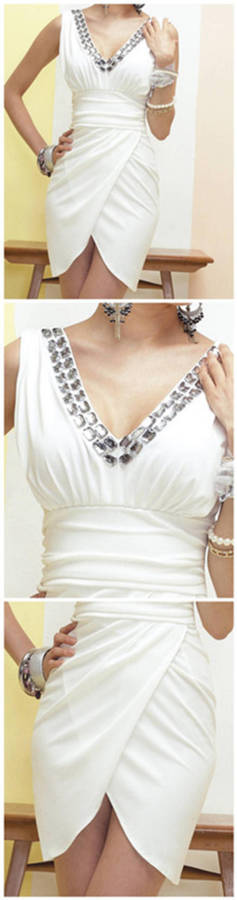 Limited Stock **Sexy** V Neck Cocktail Dress/ Casual Dress in White