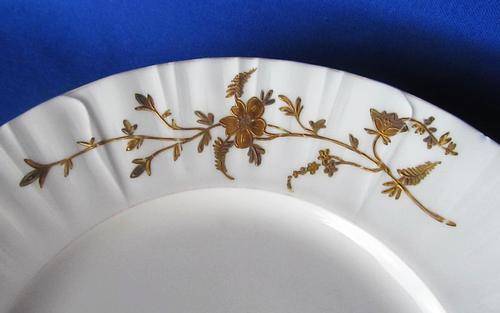 This Antique (factory closed in 1906) gold painted Cake Plate is in very good vintage condition with no cracks or restoration.