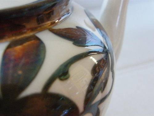 Limoges silver clad 5 piece tea set, very rare, teapot and sugar bowl with lid and milk jug
