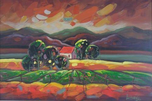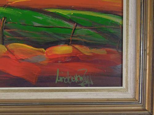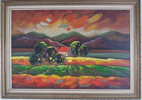 Stunning Linda Van Zyl Oil on Board - Brightly Coloured Rural Scene