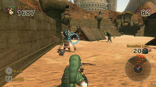 "Link's Crossbow Training drops players into a world in the style of The Legend of Zelda: Twilight Princess. Players assume the identity of hero Link, who progresses through a series of tests to perfect his crossbow marksmanship. Start with stationary bull's-eyes and graduate to moving targets before defending Link against all kinds of enemies."