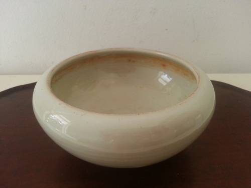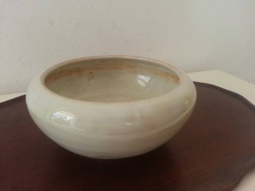 Offered for sale is a Linn Ware South African studio ceramic bowl in a pale cream coloured glaze with traces of russet brown . It is a medium sized bowl in good condition ; there are some faint scratches on the inside of the bowl from use. The piece is stamped on the base with the circular mark and LW altough the marks are indistinct. The dimensions are : width at top aperture 12.5 cm; width at the shoulder of the bowl 14cm ;width of the base 7.5cm ; height 7cm . This piece was made circa 1942- 1955 at the Linn Ware studio in Cullinan near Olifantsfontein on the East Rand .